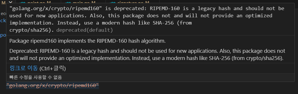 h160 := p.Hash160(compressed) // 타원곡선 점의 SEC 형식을 160비트 해시로 변환